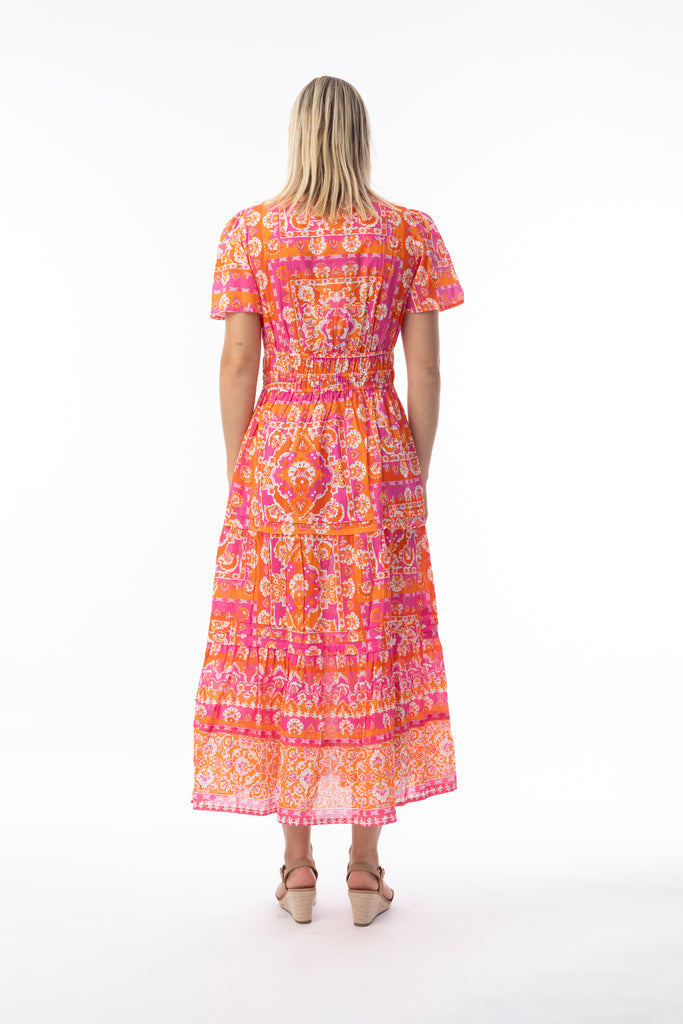 ORIENTIQUE - MONTEVIDEO PINK PRINT DRESS - 10075