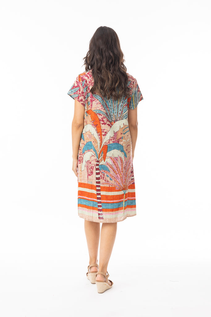 ORIENTIQUE -PONTA VERDE PRINT SHORT SLEEVE DRESS - 40200