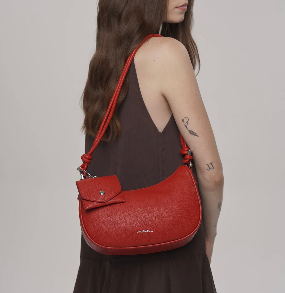 • Adjustable shoulder strap - shoulder to crossbody with knotted feature